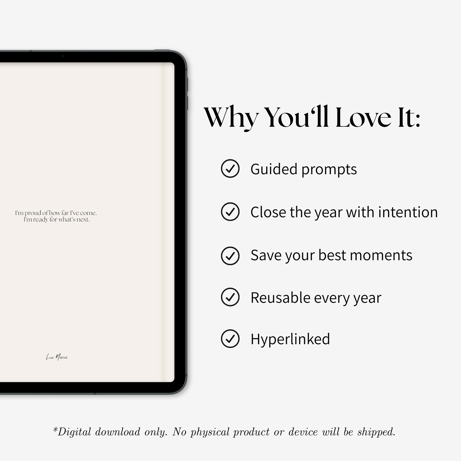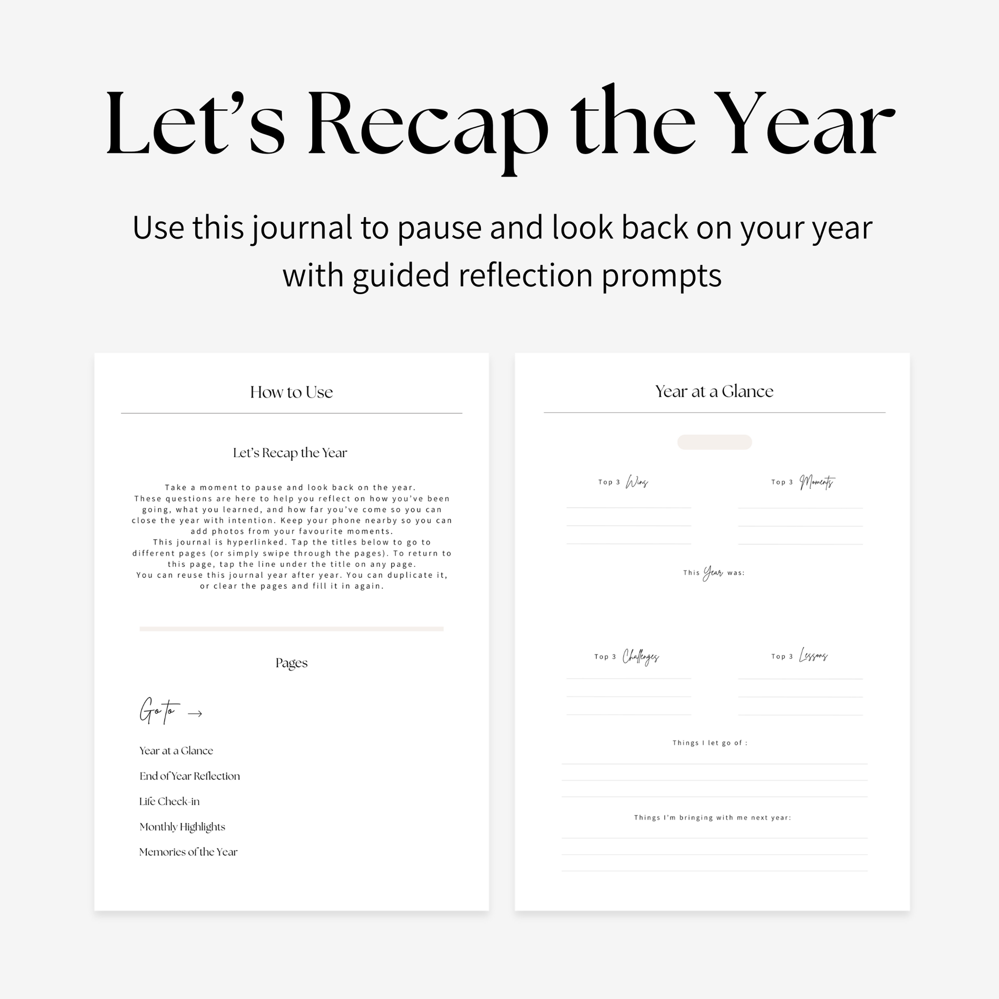 If this year felt like it flew by, now is a good time to pause. This End of Year Recap Digital Journal includes guided prompts and space for your favourite photos to help you look back on what went well, what you’ve learned and how far you’ve come and close the year with intention. Simple, calming, and reusable year after year.